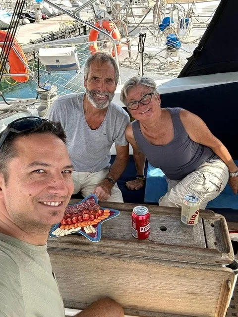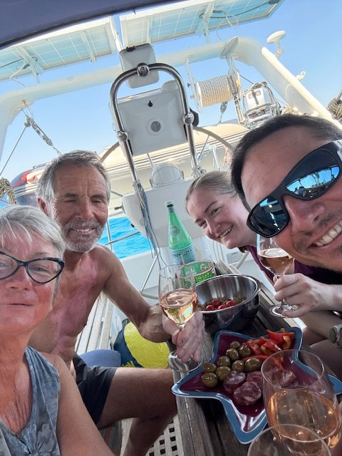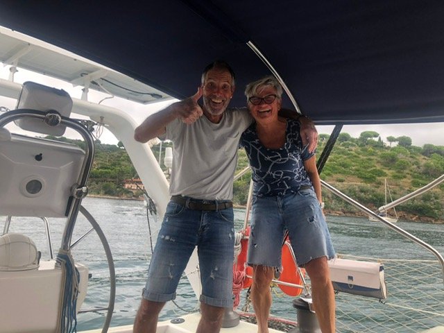 Ab dem 11. Juli sind Sandra und Urs für 10 Tage unsere Gäste auf der Trinity. Eine herrliche Zeit mit baden und Schnorcheln im türkisblauen Wasser, Fondue essen an Bord und reichhaltigen Aperitivos vergeht die Zeit im Fluge. Auch die Kochkünste von Urs, durften nicht fehlen. Ein herzliches Danke schön an Euch zwei. Der nächste Schlag führte uns an der sardinischen Ostküste entlang nach Olbia, wo uns Nadine und Pascal erwarteten. Wir erlebten eine tolle Woche mit Segeln, Ankern, Schnorcheln usw. Nach gut einer Woche heisst es Abschied nehmen und mit dem Dhingi gings an Land. Es esch eifach schön gsi. Unser nächstes Ziel war Porto - Vecchio, weiter nach Taverna auf Korsika. Bei besten Segelbedingungen steuerten wir die Bucht von Biodola in Norden von Elba an. Nächstes Ziel ist die Bucht von Portoferraio wo wir an einer Boje liegen, direkt vor der Stadt. Nach 2 Tagen wechselten wir in den Süden von Elba nach Porto Azzurro und bleiben für 4 Tage vor Anker. Was für eine Überraschung, Ruth und Urs besuchen uns auf der Trinity. Sie sind auf Elba in den Ferien.
